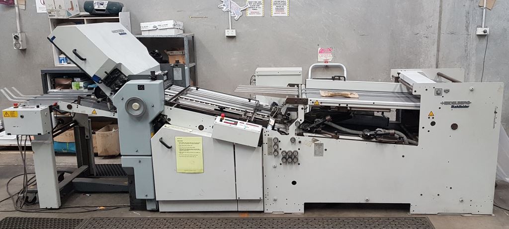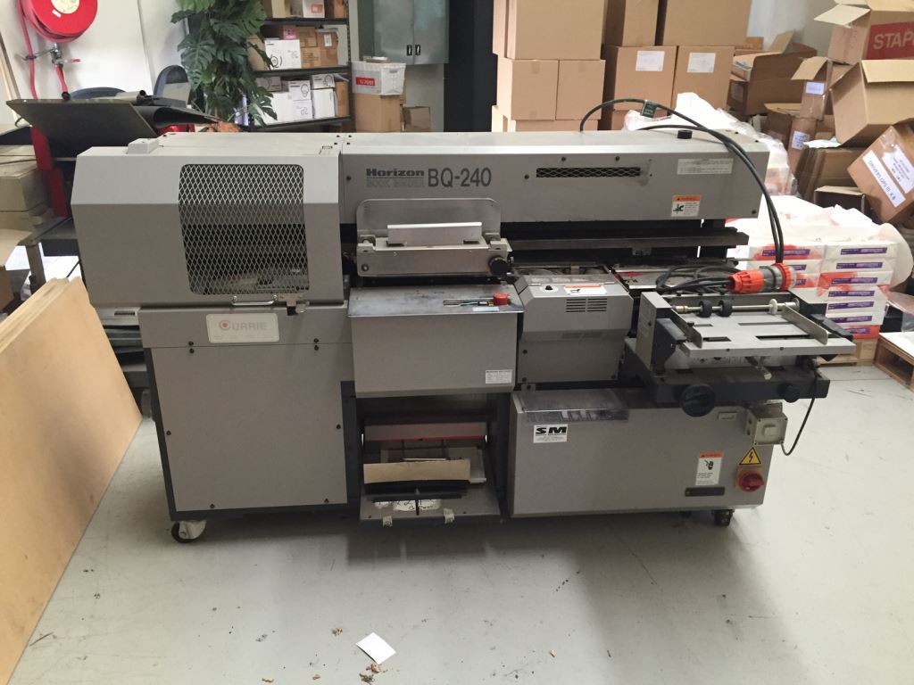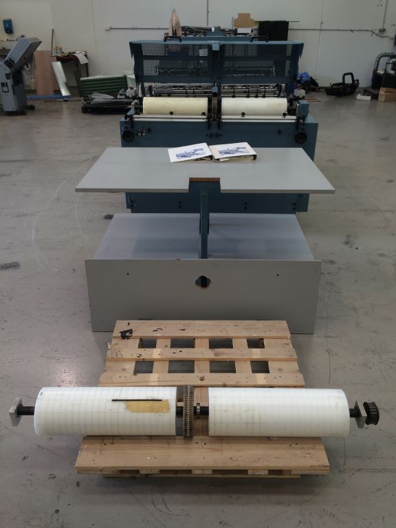 | 4 FEEDERS,cover feeder, stitcher unit with 2 heads,With Rima RS-1012S stacker system, three way trimmer.Max Size Untrimmed 355x311 mm,Max Size Untrimmed (Auto Fed) 126x92 mm,Max Size Trimmed With Lap 349x305 mm,Minsize Trimmed (Standard) 120x89 mm,Product Thickness Max:10 mm,Mech Speed:9.000 cyc./h.With manuals.Good working condition. | |||
