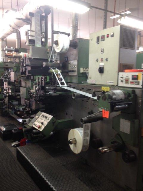 9 COLOUR (8 colour plus lamination)UNWIND42" including 3" core chuck,WEB WIDTH 425MM,Can handle BOPP FILM/PRESSURE SENSITIVE LABEL,BST web guide,splicing table,hydraulic roll lift,turn bar,6x IR lamps(not used by current owner- fans and blowers to be sent with the machine), sheeting,1 x diecut station, cross perforaing for top cut only , 3 doctor blade assemblies,,closed loop tension control on variable infeed. Thickness range 0.001" to 0.008" (25.4 to 250 microns.Interdeck VTI UV UNITS.Mechanical and electrical integration for SOA corona treater. 38,000 HOURS. It does have a chill roller.Can do foil but current user uses a plate and foil adhesive.NO turn bar. Cannot do delam & relam. Can handle BOPP Un supported Film/paper/pressure sensitive label/tag.A roll of foil on the top unwind and make an impression with the plate on the foil and the adhesive makes it transfer to the material..It can also do waterbased inks.Comes all of the dryers and fans.This water based facility will need to be recommissioned by an electrician..Tooling - 20 ANILOX Rollers & 9 Magnetic Cylinders - 90,96,98,108,110,118,124,128,140,176 plus a large number of print cylinders and gears .Electronic drive not servo driven. Spare Parts available from PCMC USA. MACHINE COMES WITH HOT AIR MOTORS IF NEEDED.Available Now. Video Link https://www.dropbox.com/s/yau7nl9x59b7apy/29045_Aquaflex.MOV?dl=0
