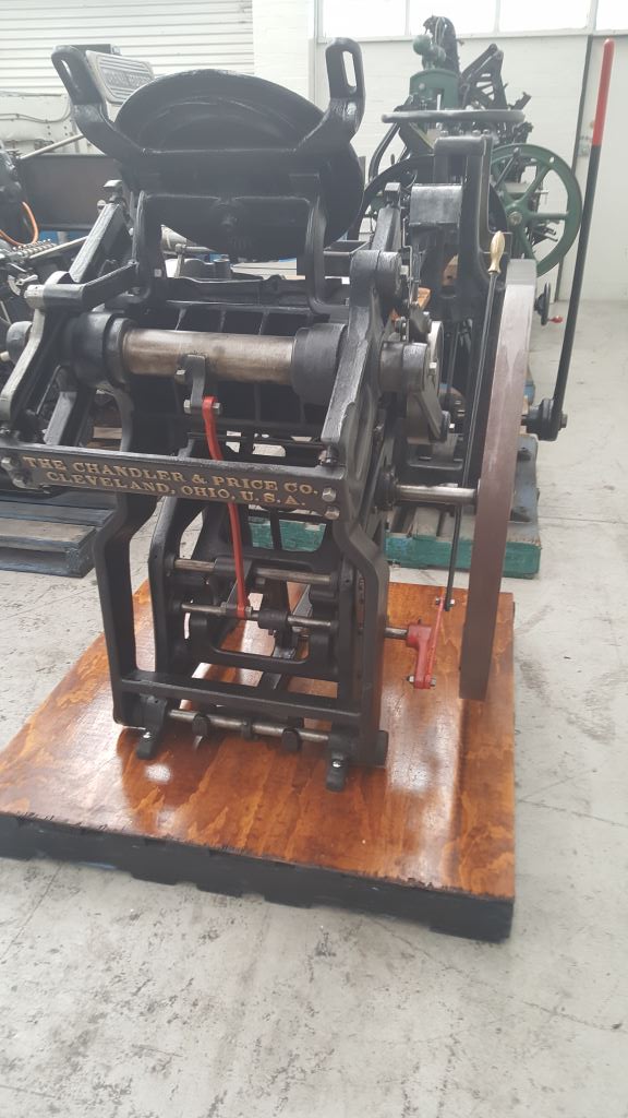 | This is an Antique letterpress clam shell platen printing press, manufactured by Golding & Co., USA in 1892. Letterpress is a term used to define the process of printing from a raised surface, be it type or block. The term takes it origins from the act of pressing a letter onto another substance, usually paper.The machine was a hand fed, treadle operated platen. The size of Pearl Presses is designated by inside chase measurement.Inside chase measurement:173mm x 275mm.Size 10 . Roller dimensions 270 mm (Length), There are two rollers on the machine.Dimension of the press:1400 mm H X 600 mm W x 900 mm Depth.ON OUR FLOOR | |||