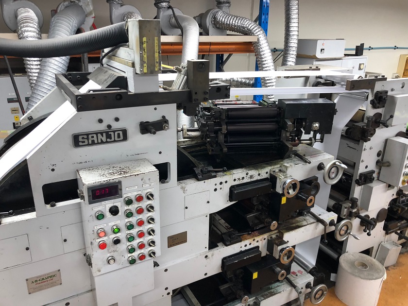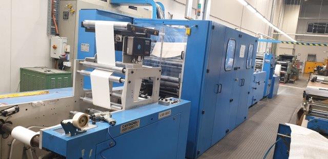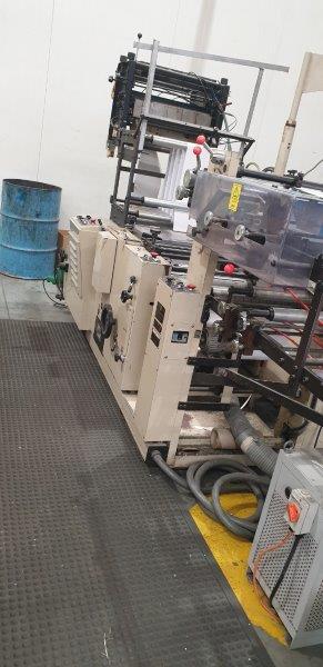250 mm web width,4 colour, lamination, flatbed diecutter, sprocket punch, rewind unit.selection of flatbed dies. Working condition. Video Link available