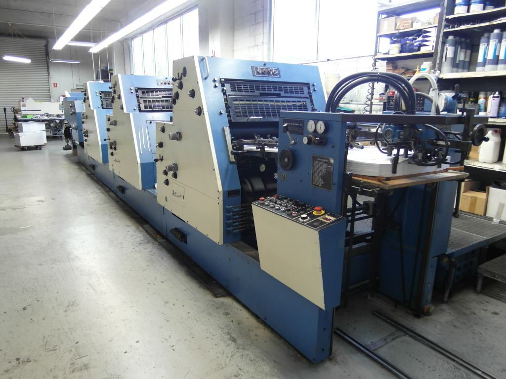 2/2 perfector. 520 x 720 mm max sheet size. Conventional Dampening. Chrome impression cylinders , quick release plate clamps,High pile Does not have CPC 1.01,Decurler, non stop delivery,Preset,Single sheet feeder, Grafix Exactomat powder spray. Has let model gripper pads which aids registeration.In production. Standard Machine.Well maintained. Can print a top quality cmyk job