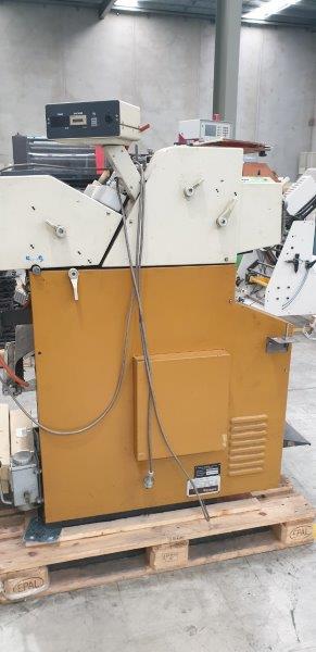 1 colour , flexo waterbase or solvent base,1 die station,320mm wide, turnbar,laminate ( self adhesive only ) ,duel rewind, 50m / min run speed Max.Mag Dies list:68T, 74T, 75T, 76T, 80T, 82T, 88T, 92T, 98T, 99T, 100T, 110T, 118T, 128T. Print Cylinders:64T, 74T, 92T, 102T, 118T .DIMENSION: 3METRES L X 1.4 WIDEX 1.8 HIGH WEIGHT 2.8 TONNE, 1 PIECE