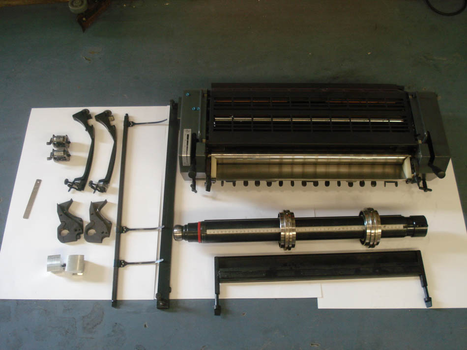 | Rotary Shell 1 x GTO52 $3500.PART NUMBER- OLD : 69.410.001 & NEW : MV.021.957. Can be used as a over printer.The unit has clamps that are used to clamp onto the numbering shaft and a plate similar to a label press that sticks on to the rotary shell itself is used with the ink duct from the numbering unit for the colour. | |||
