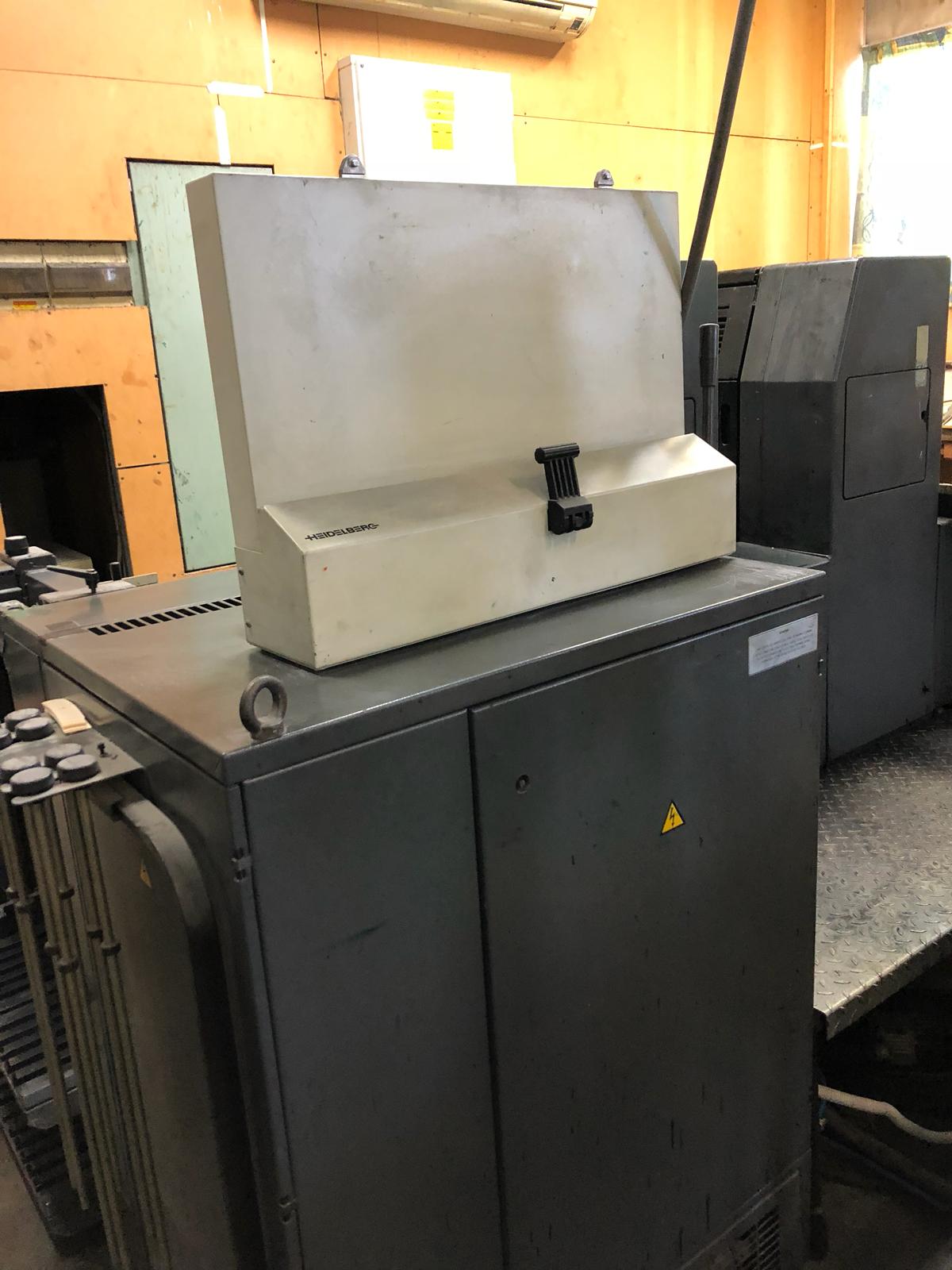 Alcolor dampening system, Approx 161 Mil Imp,With technotrans re circulation,Side lay control,Sheet decurler. Powder spray,Eltex antistatic device. Free from damage/ repairs to cylinders.The Ewk1 CONTROL BOARD is faulty.Perfecting not working as the intensifier needs repair .NO COMPRESSOR.