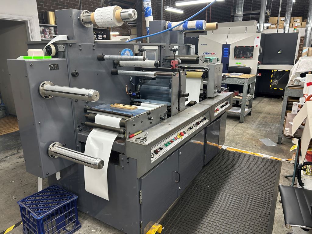 330 MM WEB WIDTH,Runs right to left,semi & full rotary capability,unwind Diameter 700 mm, unwind air mandrel 76mm, max reel weight 150 kgs, 1 x Flexo unit, 1 x diecut,Vetaphone corona Plus treater, 1 x GEW UV, unwind/rewind (2 x rewinders) used for laminate,2 x back slitting knives, 2 x male & female sheer knivws, waste removal. Tooling- 3 anilox rollers,2 x ink pans, 2 x coating rollers. 1 x print cylinder. 3 other cylinders need re rubbering and new treads. Paper lift for unwind.Manuals included. Working condition. Video link can be sent on request