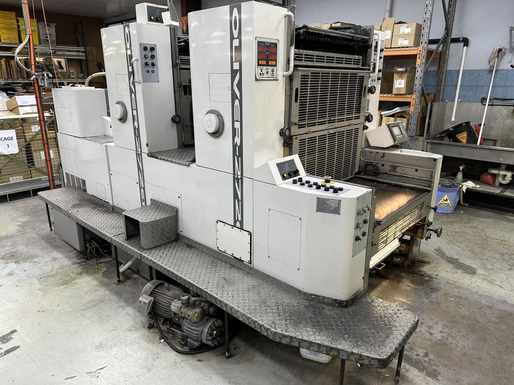 SEMI AUTO plate,Max Sheet Size:520 x 720 mm,Minimum Sheetsize: 350 x 257 mm,Image Area: 510 x 710 mm. Maximum Speed: 12,000 sheets/hour,bacher register system with plate punch (Punch is standard and was done on the plate setter ),remote running register,olivermatic alcohol dampening,cooling and recirculation,manual segmented ink ducts,high pile feeder and low pile delivery,transformer,semi auto plate.Machine it comes with full numbering unit and numbering machines: 4 straight, 4 convex, perf rings, and spare rollers, new jackets. Operators' manual. Technical Manual Parts book.Spare rollers etc. Working condition
