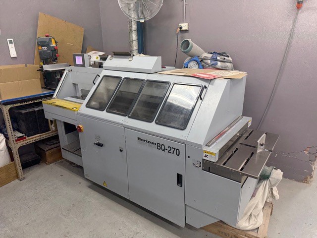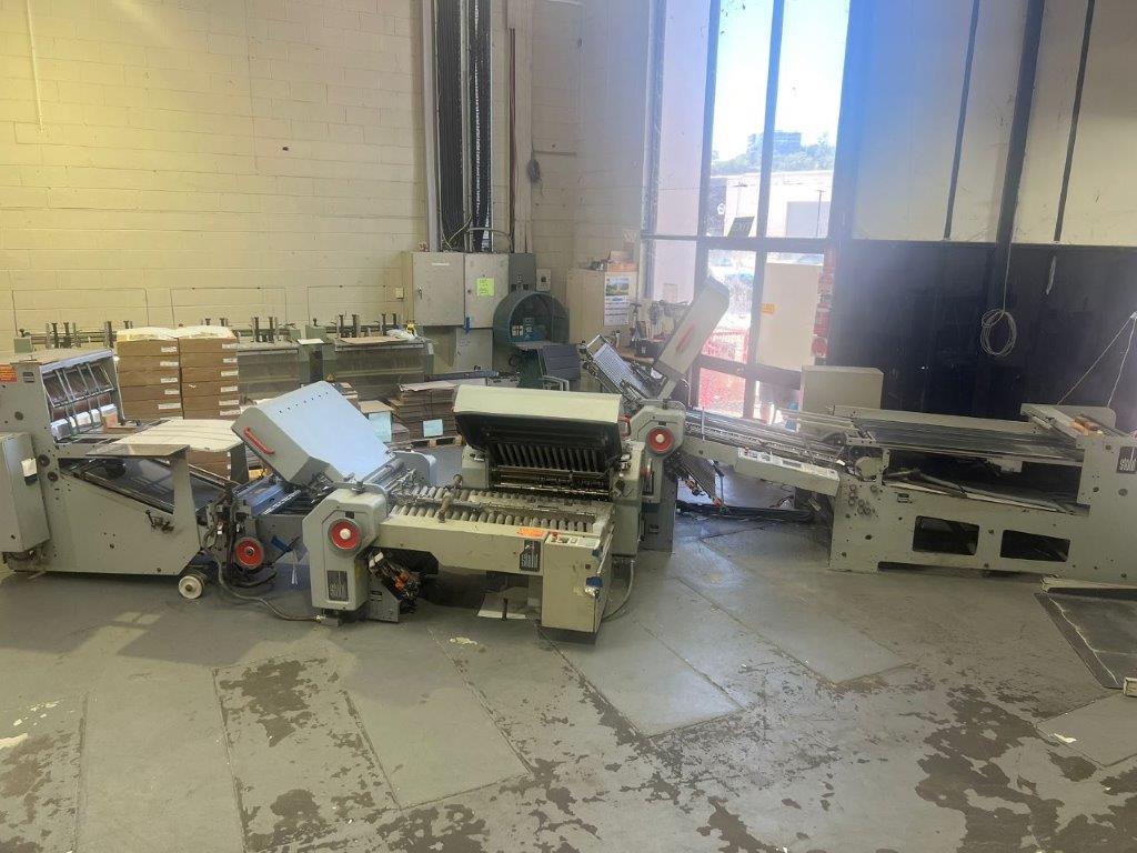 Maximum untrimmed formats: 365 x 315 mm,Minimum untrimmed formats: 105 x 115 mm,Maximum mechanical speed: 9.000 cycles / hour. 1551 Double Feeders x 3,1 x stitching station 1552 with 2 stitching heads,1 x 3 Knife Trimmer, 1522 , 1 X COVER Feeder -1528, Electric Conveyor 1511 x 1 ,Rima Stacker RS-11,1999.Manuals -operators, wiring and spare parts. Working Condition. Supplier motivated to sell. Video link available on request.